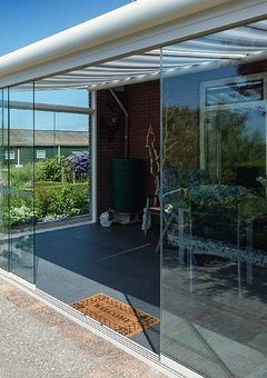 A Climaglide üvegtoló rendszert kérheti a már meglévő műanyag, fa, alumínium terasztető oldalbeépítésére is.
